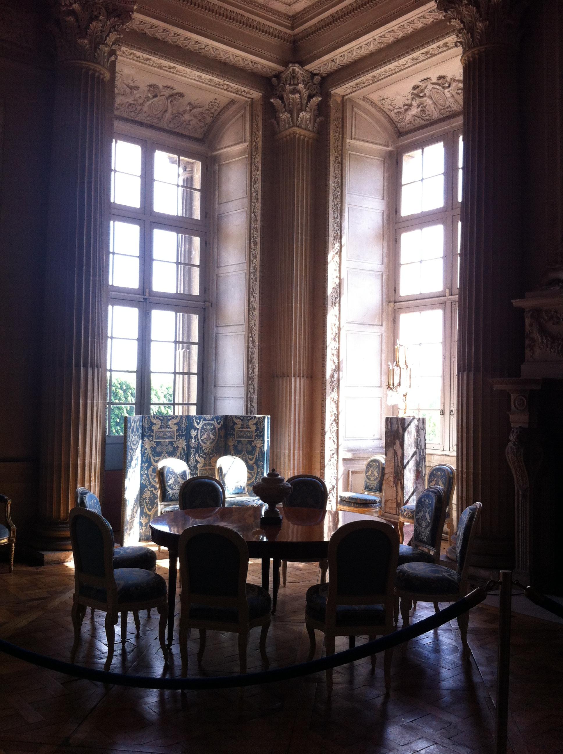Château de Maisons à Maisons – Laffitte 建於1646年,就是說跟凡爾賽宮是盧年代建築的,不過同城堡唔同命,拉菲特城堡好鬼細,而且在外邊看也沒有凡爾賽那種非凡瑰麗的皇室氣派。就站在那道閘前我仰頭觀看,那些褪了的金色也沒有補上沒有修緝,有點可憐。