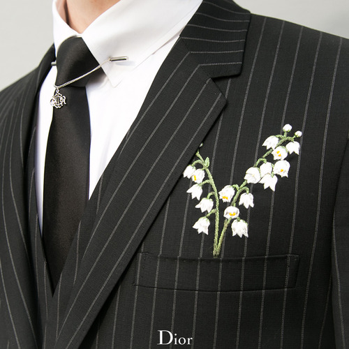 即使相隔半個世紀,早在年初發布的14/15 FW 男裝作品秀上,掌舵的 Raf Simons 再次採用Dior 最愛的花兒鈴蘭百合作為設計元素,叫帥氣男生更多一份優雅。